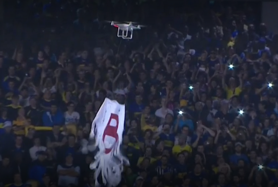 | Drone carregou o "fantasma da B" com o intuito de provocar o River |